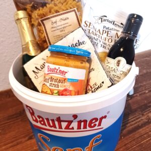 Das Präsent kann bei der Dekoration und Zusammensetzung je nach Verfügbarkeit von der Darstellung leicht abweichen. Der genaue Inhalt ist in der oben angegebenen Inhaltsbeschreibung aufgeführt.